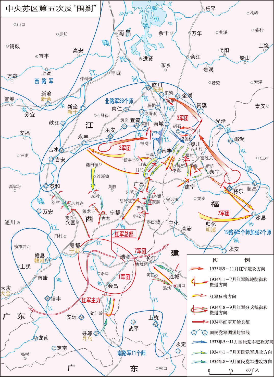 土地革命战争时期,中国工农红军第一方面军在江西省南部、福建省西部地区,反击国民党军50万兵力“围剿”中央苏区的战役。 国民党军采取堡垒主义的新战略发起“围剿”,红军仓促应战 1933年初,日军加紧入侵华北,中华民族危机日益严重。然而,国民党政府主席蒋介石却置民族危亡于不顾,坚持推行“攘外必先安...