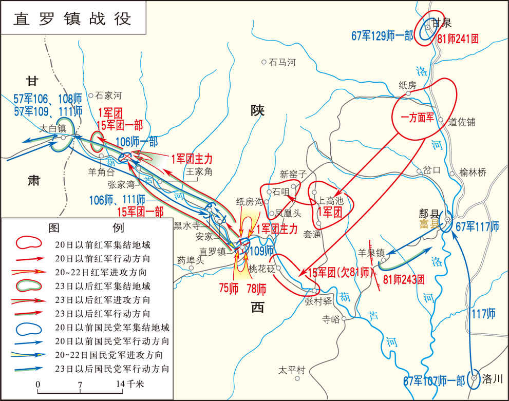 土地革命战争时期,中国工农红军第一方面军在陕西省鄜县(今富县)直罗镇地区对国民党军的进攻战役。1935年10月,中国工农红军陕甘支队(由红一方面军第1、第3军和军委纵队改编)长征到达陕甘苏区。与此同时,红军第15军团在陕甘苏区第三次反“围剿”中又取得劳山战役的胜利。蒋介石对此极为震惊,立即重...