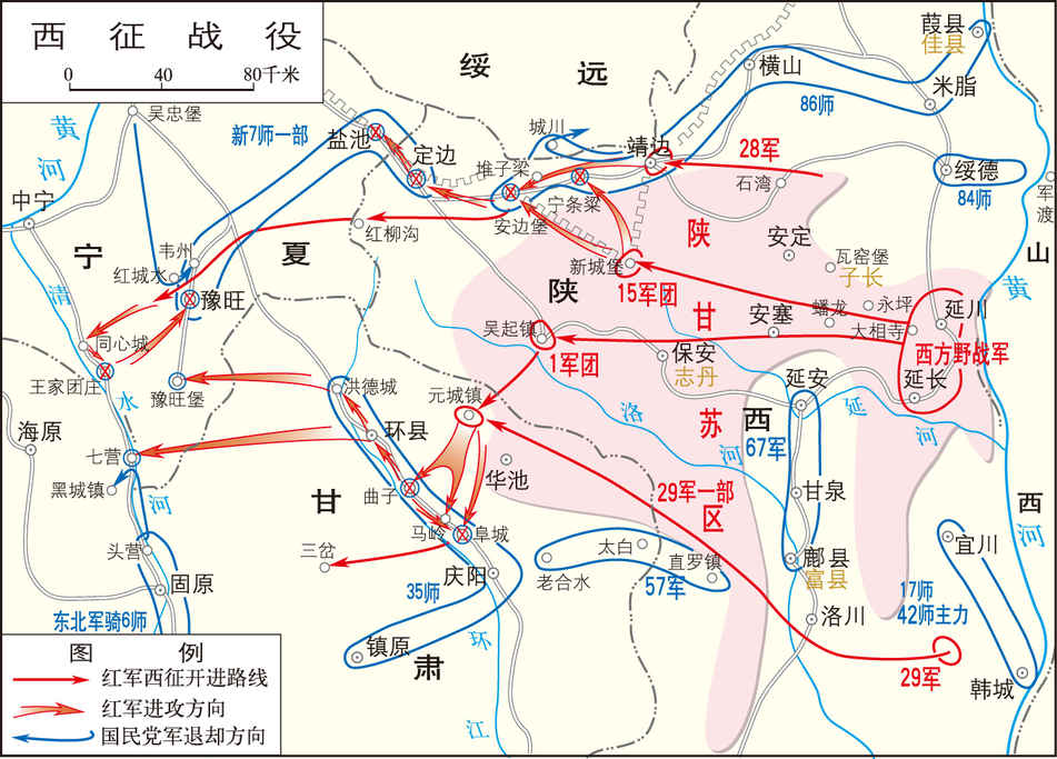 土地革命战争时期,中国工农红军第一方面军对陕西、甘肃、宁夏三省边界地区国民党军的战略性进攻战役。 1936年5月5日,红一方面军东征回师陕北后,中华苏维埃人民共和国中央政府和中国人民红军革命军事委员会发表了《停战议和一致抗日通电》。但是,蒋介石继续坚持“攘外必先安内”的反动政策,并调集16个师...