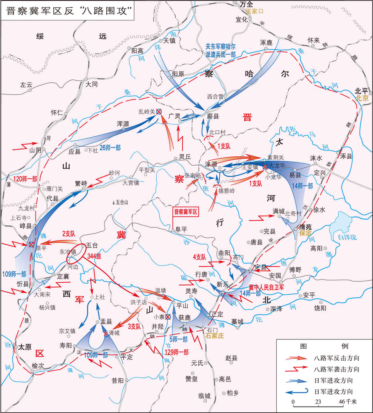 抗日战争时期,八路军晋察冀军区部队和第115师一部在山西、察哈尔、河北三省边界地区反击日军大规模围攻的作战。 1937年11月上旬,晋察冀军区成立,下辖4个军分区。12月中旬,主力部队整编为4个支队,共7600余人。主力部队和民兵、游击队一起,在山西、察哈尔(今分属内蒙古、河北)、河北三省边界...