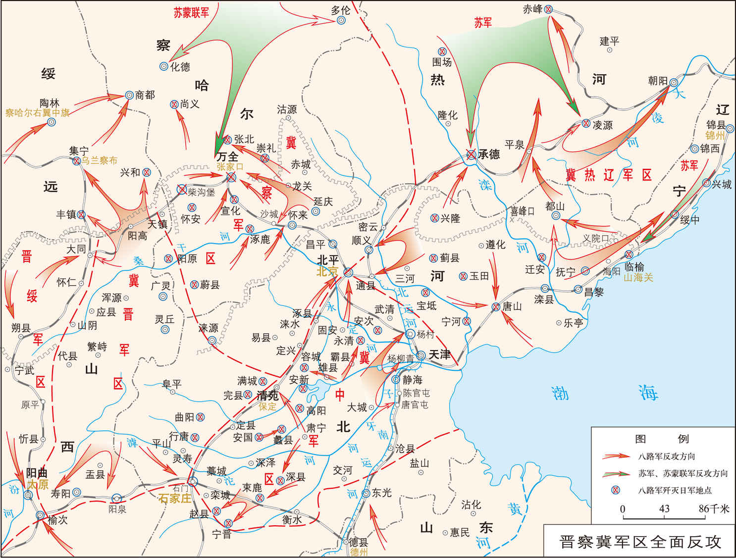 抗日战争时期,八路军晋察冀军区部队为收复城镇、控制交通要道、歼灭拒绝投降的日伪军而进行的全面反攻作战。 1945年8月上旬,世界反法西斯战争已临近最后胜利,中国的抗战形势空前有利。9日,中国共产党中央委员会主席毛泽东发表《对日寇的最后一战》声明,号召中国人民一切抗日力量举行全国规模的反攻。10...