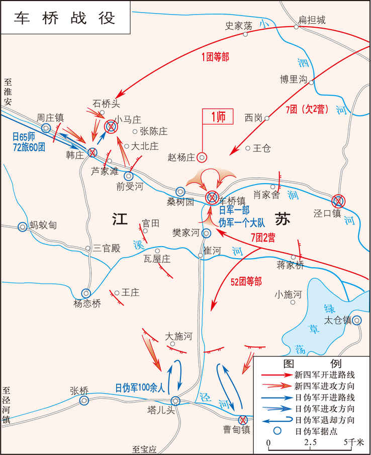 抗日战争时期,新四军第1师兼苏中军区所属部队在江苏省淮安县东南车桥地区,对日伪军进行的进攻战役。 1944年春,日军为打通中国大陆交通线,陆续从华中地区抽调部队南下参加作战。驻苏中、苏北地区的日军为弥补兵力不足,遂收缩防区,强化伪军,并加强对沿海地区的控制。新四军第1师兼苏中军区,遵照中共中央...