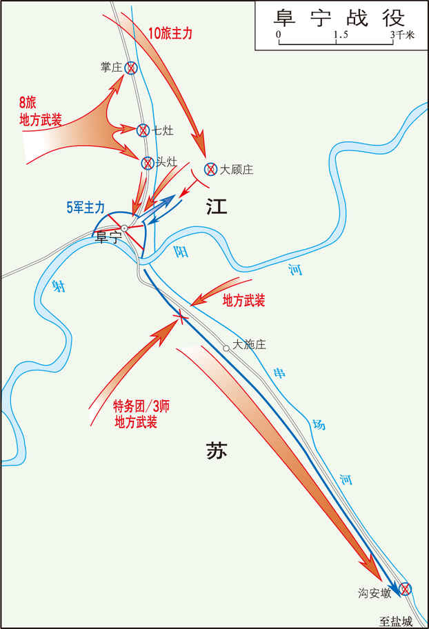 抗日战争时期,新四军第3师兼苏北军区部队,在江苏省北部阜宁县城对伪军进行的进攻战役。 1945年春季,新四军第3师兼苏北军区为执行扩大解放区、缩小沦陷区的战略任务,在江苏省北部对日伪军发起攻势作战。3~4月间,日军为防止美军在华中沿海登陆,加强长江下游防务,将阜宁等地的日军南撤至长江沿岸地区,...