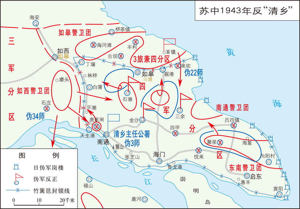 抗日战争时期,新四军第1师兼苏中军区所属部队在苏中抗日根据地人民配合下,在江苏省南通地区反击日伪军“清乡”的斗争。 苏中抗日根据地是新四军坚持华中抗战的战略基地之一,南临长江,东濒黄海,西以京杭运河为界,北与盐阜、淮海区毗邻,境内人口稠密,物产丰富,与日伪统治的政治经济中心南京、上海隔江对峙,...