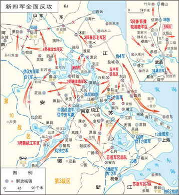 抗日战争时期,新四军为收复城镇、控制交通要道、歼灭拒绝投降的日伪军,在华中战场进行的全面反攻作战。 1945年8月上旬,世界反法西斯战争已临近最后胜利,中国的抗战形势空前有利。9日,中国共产党中央委员会主席毛泽东发表《对日寇的最后一战》的声明,号召中国人民的一切抗日力量举行全国规模的反攻。10...