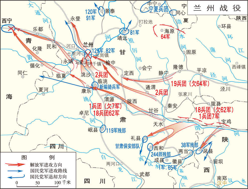 解放战争时期,中国人民解放军第一野战军在甘肃省兰州地区同西北国民党军进行的决战性作战。 1949年7月扶郿战役后,国民党西安“绥靖”公署主任胡宗南所部退至秦岭及其以南地区。西北军政长官公署代长官马步芳(8月中旬任长官公园署长官)、副长官马鸿逵为阻止人民解放军第一野战军沿西(安)兰(州)公路西进...