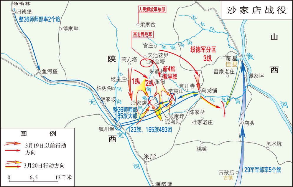 解放战争时期,中国人民解放军西北野战军在陕西省米脂县沙家店地区对国民党军进行的进攻作战。 1947年8月16日,西北野战军撤围榆林后,以一部兵力掩护后方机关伪装主力于葭县(今佳县)附近东渡黄河,主力集结于榆林东南、沙家店西北地区隐蔽待机。国民党西安“绥靖”公署主任胡宗南判断西北野战军将东渡黄河...