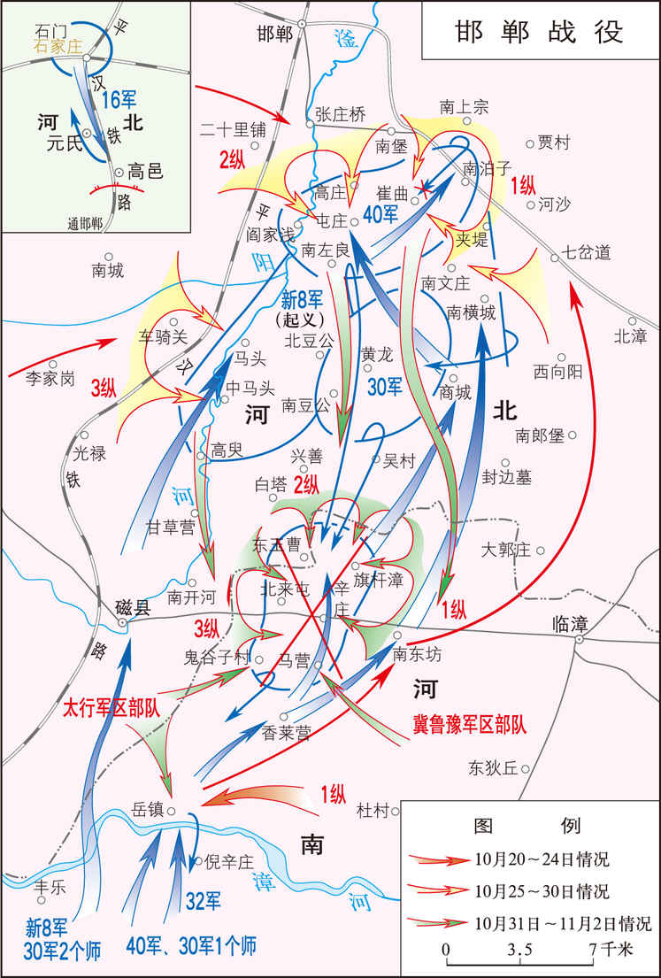 1945年10月,晋冀鲁豫军区部队主力在平汉铁路邯郸以南地区对国民党军进行的自卫反击作战。又称平汉战役。 1945年9月,以蒋介石为首的国民党政府为抢夺抗战胜利果实,调集36个军73个师,兵分四路,沿平绥、同蒲、平汉、津浦等铁路进攻华北各解放区,其中平汉线(今北京-汉口)一路为主力,目标是抢占...