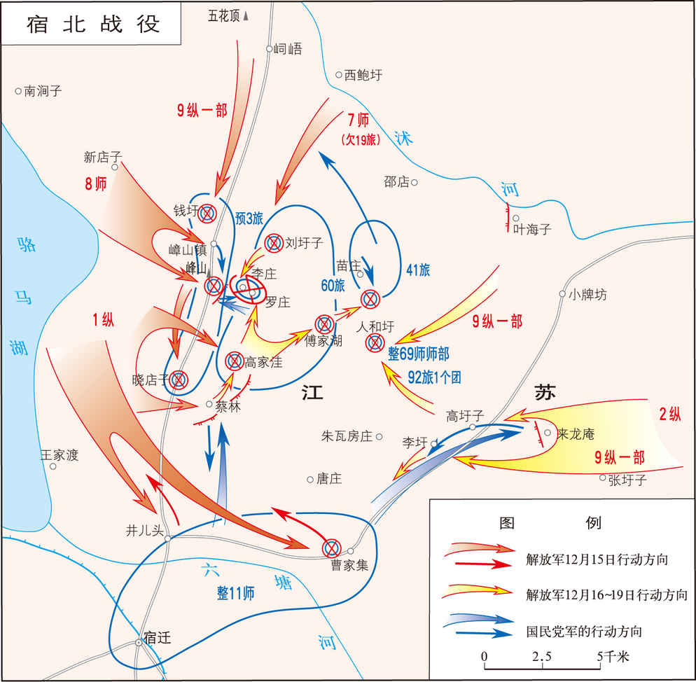 解放战争时期,中国人民解放军山东野战军和华中野战军在江苏省宿迁以北地区反击国民党军进攻的作战。 1946年6月全面内战爆发后,国民党军以重兵进攻华东解放区,至11月,以损失10万余人为代价,占领了苏中、淮南、淮北地区。同月中旬,国民党军为配合“国民大会”召开,拟定了一个所谓“结束苏北战事”的大...