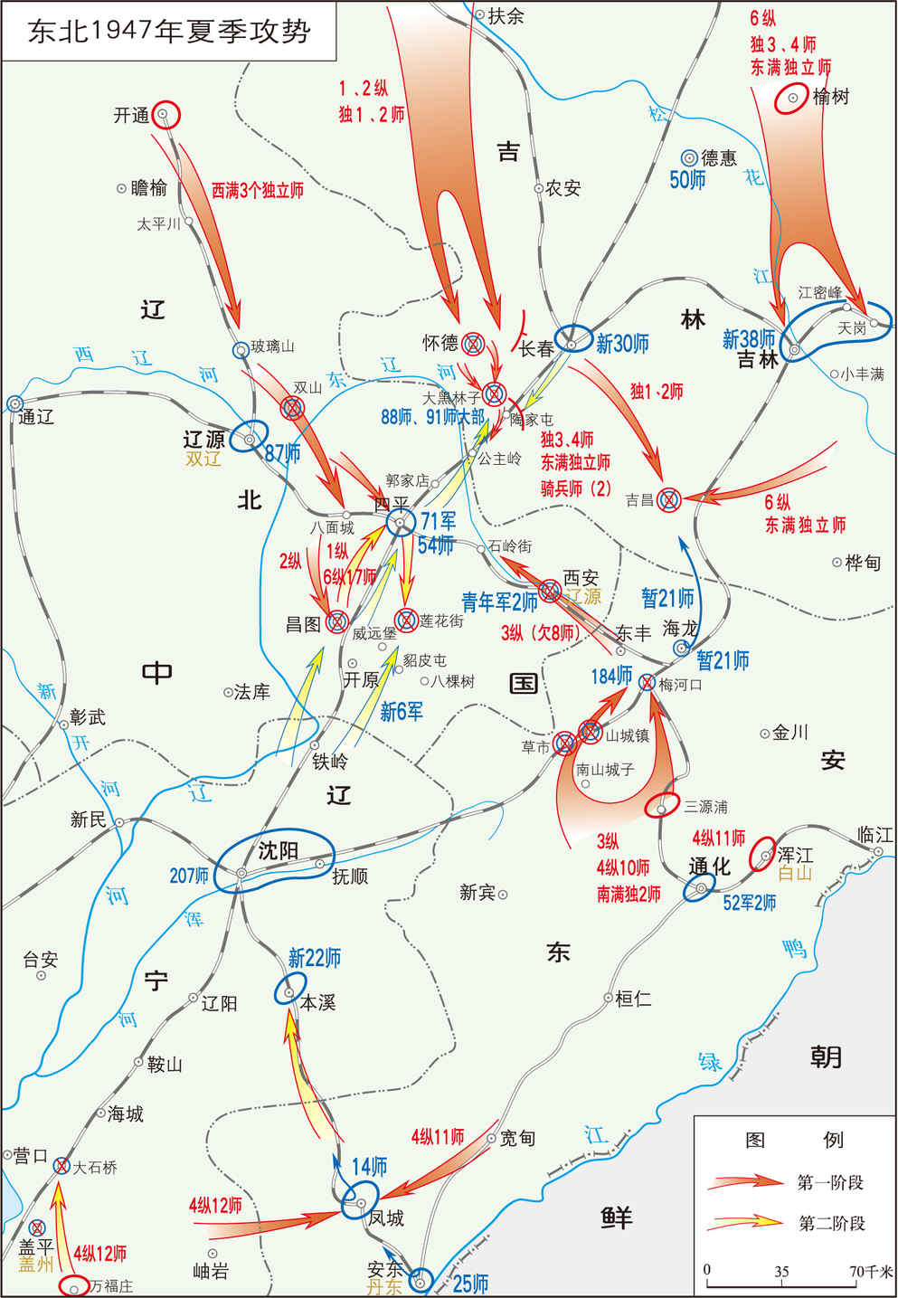 解放战争时期,东北民主联军在长春至沈阳、沈阳至永吉、锦州至承德铁路沿线两侧地区对国民党军实施的战略性反攻作战。 1947年春,国民党军东北保安司令长官杜聿明在其“南攻北守、先南后北”的战略计划受挫后,采取“内线作战,行持久之战略守势”的方针,企图巩固占领区,继续分割东北与华北解放区,待关内援兵...