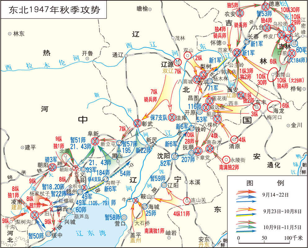 解放战争时期,东北人民解放军对四平至大石桥、锦州至沈阳铁路沿线国民党军进行的大规模进攻作战。 1947年,东北国民党军连遭东北民主联军(1948年1月1日改称东北人民解放军)夏、秋季攻势的打击后,被迫收缩兵力于长春、永吉等地及中长铁路(哈尔滨—满洲里—绥芬河—大连)四平至大石桥段、北宁铁路(今...