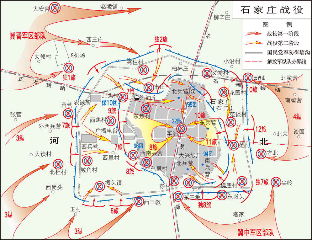 解放战争时期,中国人民解放军晋察冀军区部队对国民党军坚固设防的河北省石家庄市进行的攻坚战。 石家庄又称石门,位于石德(石家庄—德州)、平汉(今北京—汉口)、正太(正定—太原)三条铁路交会处,是华北战略要地。国民党军在原侵华日军构筑的工事基础上,经连年加修,至1947年已构成完备的环形防御体系。...