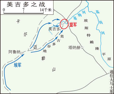 约公元前1482年,古埃及法老图特摩斯三世远征西亚时的一次会战。为征服叙利亚和巴勒斯坦,图特摩斯三世率军约3万人从尼罗河三角洲东部的萨鲁出发,经加沙到达离美吉多(在今巴勒斯坦北部)不远的叶赫木城。与此同时,在米坦尼王国支持下,300多名叙利亚和巴勒斯坦王公结成以卡迭石城统治者为首的反埃及同盟,并...
