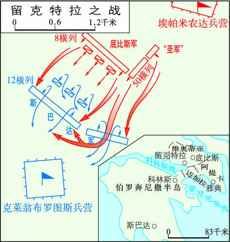 公元前371年,古希腊城邦底比斯和斯巴达之间的一次会战。科林斯战争后,斯巴达在波斯支持下继续推行压迫和奴役其他城邦的政策,引起不满。前378年,希腊再次爆发反斯巴达的战争。以雅典为首组成第二次海上同盟,以底比斯为首恢复维奥蒂亚同盟。前371年,交战国一致同意议和。在泛希腊和会上,斯巴达要求底...
