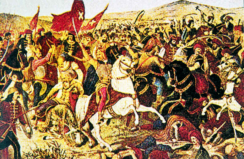 1389年6月15日,塞尔维亚和波斯尼亚等国联军同奥斯曼土耳其侵略军在科索沃平原进行的会战。奥斯曼土耳其在小亚细亚崛起后,自14世纪起开始西进,夺占拜占廷领土,侵入欧洲,屡犯塞尔维亚、保加利亚等地。1389年春,奥斯曼土耳其苏丹穆拉德一世率土军4万人(含禁卫军2.5万人、骑兵2500人)进犯塞尔...