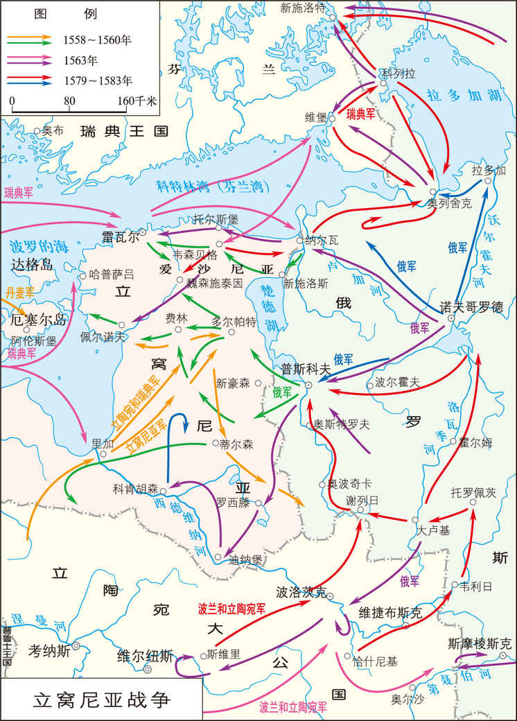 1558~1583年,俄国与波兰—立陶宛、瑞典、丹麦等国为争夺立窝尼亚地区而进行的战争。 立窝尼亚(今爱沙尼亚和拉脱维亚大部)位于芬兰湾南岸,是波罗的海东岸地区的交通枢纽,自13世纪起处于德意志骑士团统治之下,由于其战略地位重要,逐渐成为邻国觊觎的对象。1558年1月,俄国沙皇伊凡四世为夺取波...