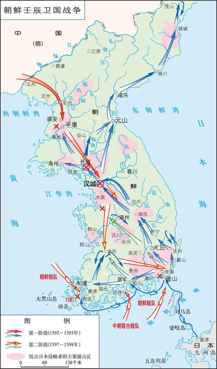 16世纪末,朝鲜军民在中国支援下抗击日本入侵的卫国战争。因战争爆发于夏历壬辰年(1592)和丁酉年(1597),又名壬辰丁酉之役。 16世纪80年代丰臣秀吉以武力统一日本后,为转移国内矛盾、掠夺国外财富,推行对外扩张政策,企图吞并朝鲜、征服中国、称霸东亚。1592年5月,丰臣乘朝鲜李氏王朝党争...
