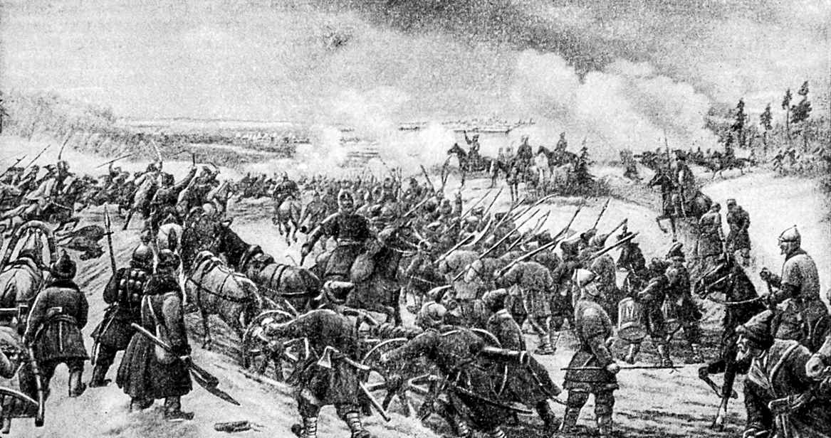 17~18世纪俄国爆发的多次农民起义。16世纪中叶起,沙皇政府颁布一系列法令加快俄国农民农奴化过程。为扩张领土,沙皇政府连年发动对外战争,战争重负大都转嫁到农民身上。遇到灾荒瘟疫,农民更是苦难不堪。因此,农民起义此起彼伏,其中规模较大的有3次。博洛特尼科夫起义军在莫斯科附近向政府军发起进攻(油画...