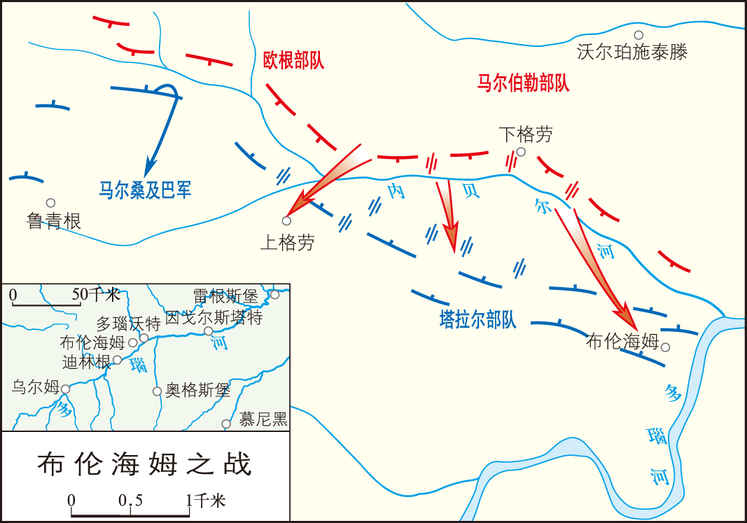 西班牙王位继承战争中,英国、奥地利、荷兰联军与法国、巴伐利亚军队于1704年在巴伐利亚布伦海姆村附近地区进行的决战。 1703年,匈牙利爆发反奥起义,法国乘机经巴伐利亚进军奥地利。奥地利处境危急,向英国求援。英、奥商定在巴伐利亚境内多瑙河沿岸与法、巴军队决战。1704年5月,英国马尔伯勒公爵率...