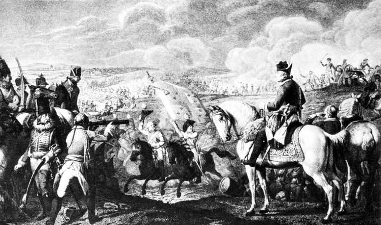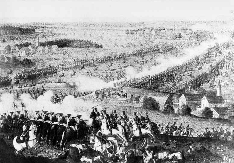 七年战争中,普军与法奥联军于1757年11月5日在莱比锡西南的罗斯巴赫进行的一次决战。 战争爆发后,法、奥、俄、瑞分别从西、南、东、北四个方向进击,企图围歼普军并肢解普鲁士。面对危局,普王弗里德里希二世在分兵抗击的同时,决心在敌对其形成合围前歼灭最弱的西路法奥联军,尔后伺机打破敌战略包围。10...