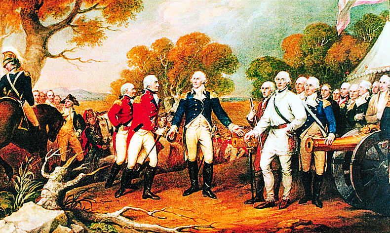 美国独立战争期间,美英双方于1777年9~10月在萨拉托加(今斯凯勒维尔)附近进行的一次具有转折意义的会战。又称比米斯高地之战。伯戈因率部向美军投降(油画) 1777年夏,英军企图以三路兵力南北对进,打通尚普兰湖—哈得孙河谷,以孤立反英最积极的新英格兰。7月5日,J.伯戈因将军率英军7000余...