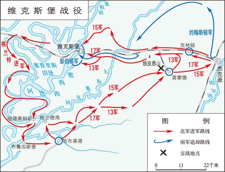 美国内战期间,北南双方于1863年4~7月在维克斯堡地区进行的多次交战。1862年4月联邦军攻占新奥尔良后,南部同盟军固守密西西比河支流亚祖河河口的维克斯堡要塞,炮击密西西比河上来往舰只,阻止联邦军前进。要塞构筑在高60多米的悬崖上,易守难攻。5~12月间,联邦军多次正面攻打要塞均遭失败。联...