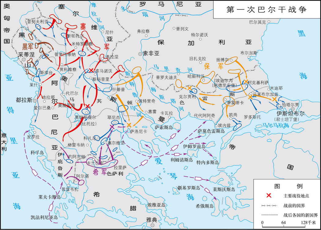 1912~1913年,巴尔干同盟与土耳其以及巴尔干国家之间进行的两次战争。 第一次战争 20世纪初,巴尔干半岛成为欧洲列强争夺的焦点,矛盾错综复杂。1912年8月,阿尔巴尼亚和马其顿爆发反抗奥斯曼土耳其帝国统治的起义,得到巴尔干各国人民的同情和支持。至9月,保加利亚、希腊、塞尔维亚和黑山逐步结...