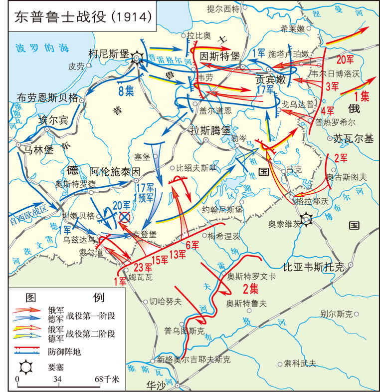 第一次世界大战初期,俄军西北方面军于1914年8~9月在东普鲁士对德军第8集团军实施的进攻战役。 8月上旬,西线战事全面展开,俄军大本营应盟国要求,决定对德国的东普鲁士和奥匈帝国的加利西亚同时发动进攻,以减轻德军对西线的压力。西北方面军(辖第1、第2集团军,由Y.G.日林斯基指挥)的任务是歼灭...