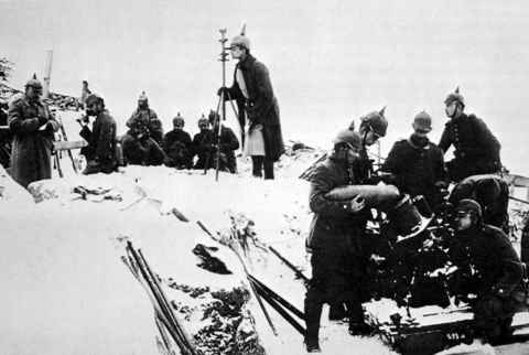 第一次世界大战期间,德军于1915年2月在东普鲁士对俄军实施的进攻战役。又称马祖里湖区冬季战役或东普鲁士冬季战役。德军炮兵阵地 同盟国1915年作战计划规定,在西线对英法联军实施积极防御,在东线对俄军南、北两翼实施迂回突击,围歼其主力于波兰突出部,迫使俄国退出战争。俄军统帅部则企图以西北方面军...
