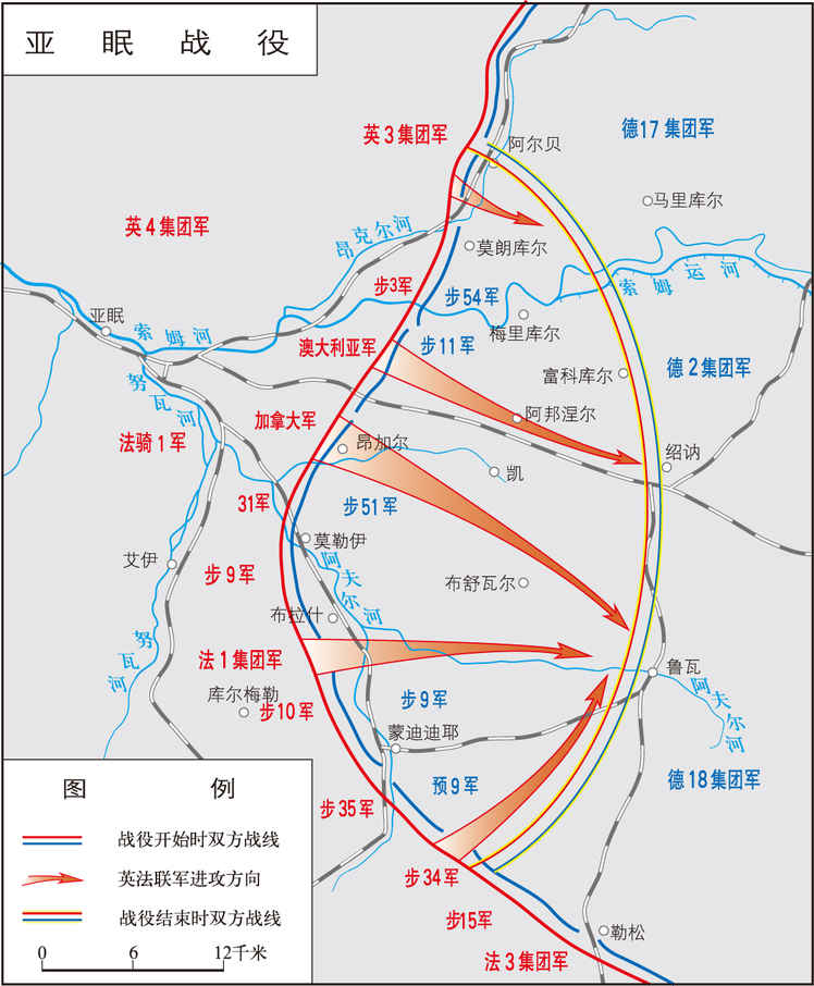 第一次世界大战后期,协约国军队于1918年8月在法国亚眠以东地区对德军实施的进攻战役。1918年7月下旬,协约国军队计划在亚眠以东地区发动进攻,以消除德军春季攻势所形成的亚眠突出部,解除德军对亚眠及亚眠至巴黎铁路的威胁,为总攻创造条件。英第4集团军和法第1集团军第31军(共17个步兵师、3个...