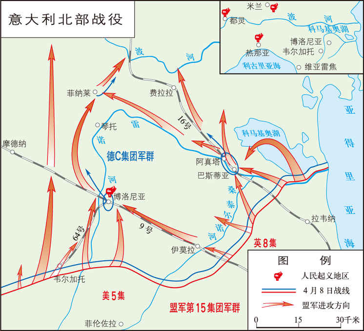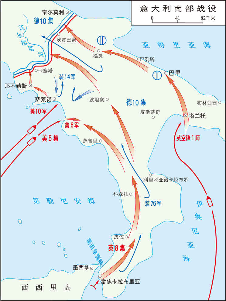 第二次世界大战中,盟军于1944年1月~1945年1月在意大利中部实施的进攻战役。意大利南部战役结束后,盟军第15集团军群(辖美国第5集团军、英国第8集团军,司令为H.亚历山大上将)与退守古斯塔夫防线的德国C集团军群(辖第10、第14集团军,司令为A.凯塞林元帅)对峙。德第10集团军(辖第14、...