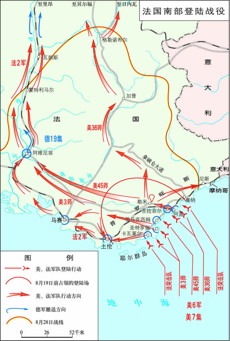 盟军在法国勒米实施空降 第二次世界大战中,盟军于1944年8月在法国南部地中海沿岸实施的登陆战役。1944年7月,盟军决定于8月15日发动“龙骑兵”行动,在法国南部戛纳至土伦一带登陆,以阻止驻法国南部德军北撤,并为盟军进攻德国本土增辟一条经由法国南部的交通线。战役由美海军中将H.K.休伊特指挥...