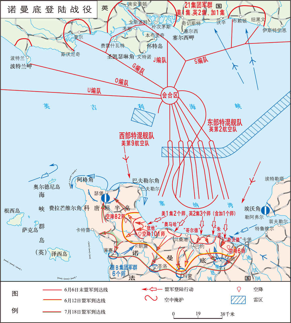 第二次世界大战中,美、英、加等同盟国军队于1944年6~7月在法国北部诺曼底地区进行的世界战争史上规模最大的战略性登陆作战。盟军进军欧洲的“霸王”计划(见西欧战局)的重要组成部分。目的是夺取集团军群登陆场,开辟欧洲第二战场,为发展对西欧的进攻并配合苏军最后击败纳粹德国创造条件。 战役背景与双方...
