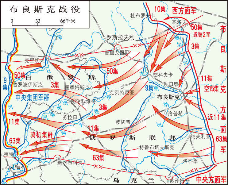 苏德战争中,苏军为粉碎德军中央集团军群所属第9集团军、解放布良斯克工业区并向戈梅利方向发展进攻,于1943年9月1日~10月3日实施的进攻战役。苏军参战部队为布良斯克方面军(辖第50、第3、第11、第63集团军,近卫第11集团军,空军第15集团军,司令为M.M.波波夫大将)。该方面军在8月18日...