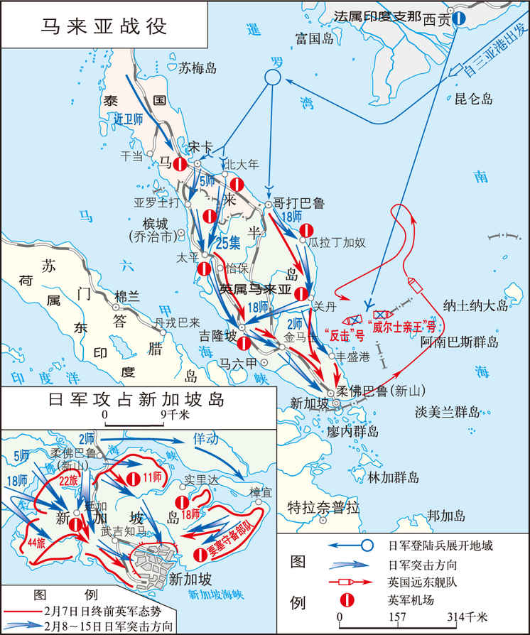 太平洋战争初期,日军于1941年12月~1942年2月在马来半岛实施的登陆战役。日军企图歼灭驻马来半岛英军,为尔后进攻荷属东印度(今印度尼西亚)建立前进基地。驻马来亚(包括新加坡)英军共3个师4个旅,约9万人,由远东英军总司令A.E.珀西瓦尔中将指挥。1941年12月4日,山下奉文中将指挥的日军...