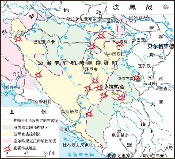 1992年4月~1995年12月,波斯尼亚和黑塞哥维那(简称“波黑”)3个主要民族围绕波黑前途和领土划分等问题而进行的战争。1991年6月起,南斯拉夫开始解体。波黑(南6个共和国之一)穆斯林、塞尔维亚和克罗地亚3个主要民族就波黑前途发生严重分歧:穆族主张脱离南独立,建立统一的中央集权国家;克族也...