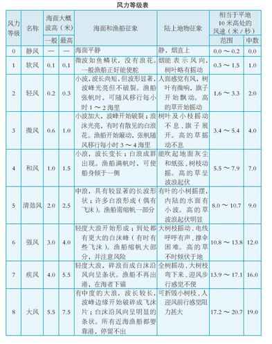 空气相对于地球表面的运动。通常指空气的水平运动,用风向和风速表示。气象用的风向指风的来向,航空、航海用的风向指风的去向。风向用16个方位或360°表示。风速指单位时间内空气移动的水平距离,常以米/秒、千米/小时、海里/小时表示。1805年英国人F.蒲福拟定的“蒲福风力等级表”,将风力分为13个等...