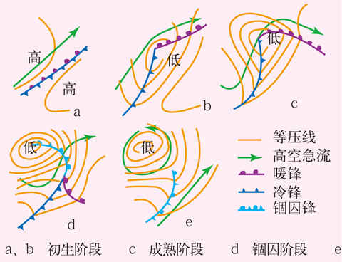 北(南)半球大气中水平气流呈逆(顺)时针旋转的大型涡旋。在同高度上,气旋中心的气压比四周低,又称低气压,简称低压。在等高面图上表现为闭合等压线所包围的低气压区。在等压面图上表现为闭合等高线所包围的低值区。气旋近似于圆形或椭圆形,大小不一,大的气旋,直径可达3000~4000千米,小的只有几百千米...