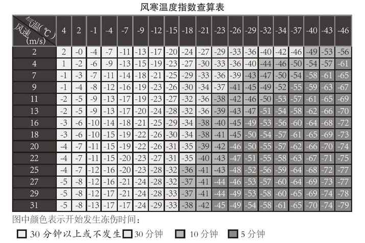 人体在低温和有风条件下对寒冷感觉程度的一种量度。单位为℃。在给定低温和风速条件下的风寒温度指数,表示的是人体的冷感程度与无风条件下相当的气温值,即人在有风条件下与无风条件相比具有相同热量损失率的等效气温。人体对寒冷程度的感觉,即热量损失率的大小,不仅与气温的高低有关,而且也与风速的大小有关。在给...