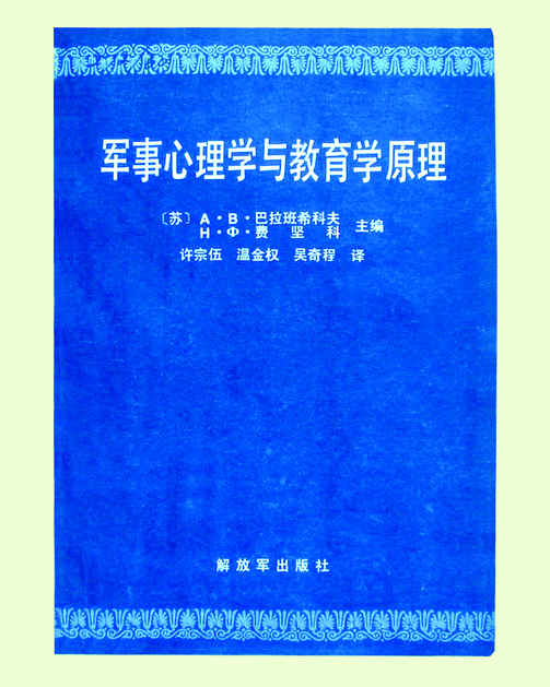苏联A.V.巴拉班希科夫、N.F.费坚科主编。莫斯科军事出版社1981年出版。中译本由许宗伍、温金权、吴奇程译,解放军出版社1984年6月出版,共27万字。 该书分为两部分。第1部分“军事心理学原理”,阐述了军事心理学的研究对象、意义、任务、研究方法及其在军人教育训练中的运用,苏联军事心理...