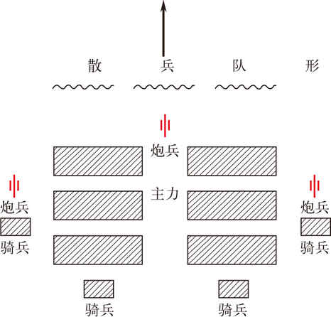 采用纵队队形进行战斗的方法。18世纪末至19世纪初,法国普遍采用了义务兵役制,同时,武器进一步得到改进,特别是野战火炮的机动性能和步枪的射击精度得到提高,纵队战术逐渐取代线式战术,成为欧洲军队普遍采用的战斗方法。纵队战斗队形示意图 运用纵队战术时,以少数兵力在战线前方组成散兵队形,随后是主力以...