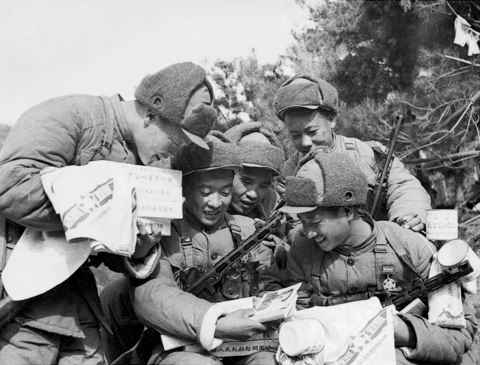 志愿军官兵收到祖国人民送来的慰问品 在抗美援朝期间,中国人民抗美援朝总会为转达祖国人民对中国人民志愿军的关怀和敬意,在抗美援朝战争中和朝鲜停战后,三次组织中国人民赴朝慰问团,前往朝鲜慰问中国人民志愿军和朝鲜军民。慰问团成员由全国各民族、各民主党派、各人民团体和革命烈士家属、军人家属的代表,各条...