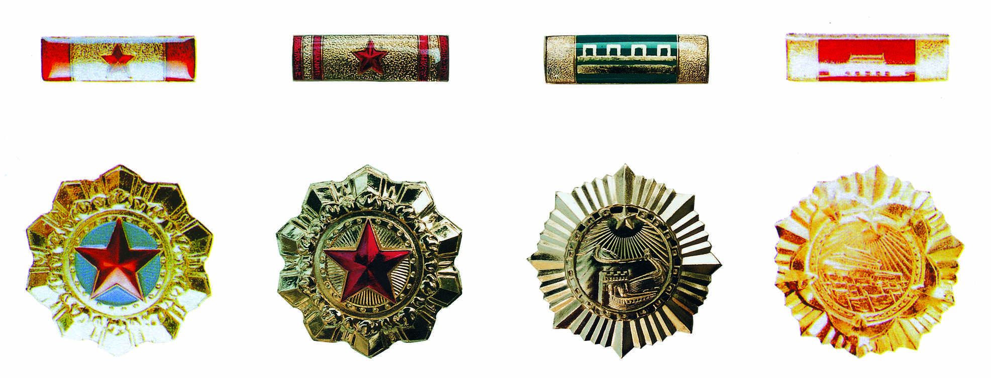 中华人民共和国中央军事委员会授予中国人民解放军在革命战争时期入伍或参加革命工作的离职休养干部的荣誉证章。共分三种:①红星功勋荣誉章。采用红星和星火图案,象征在中国共产党领导下,工农革命之火呈燎原之势。②独立功勋荣誉章。采用长城图案,象征中国人民为民族独立而筑成抗日的坚固长城。③胜利功勋荣誉章。采...