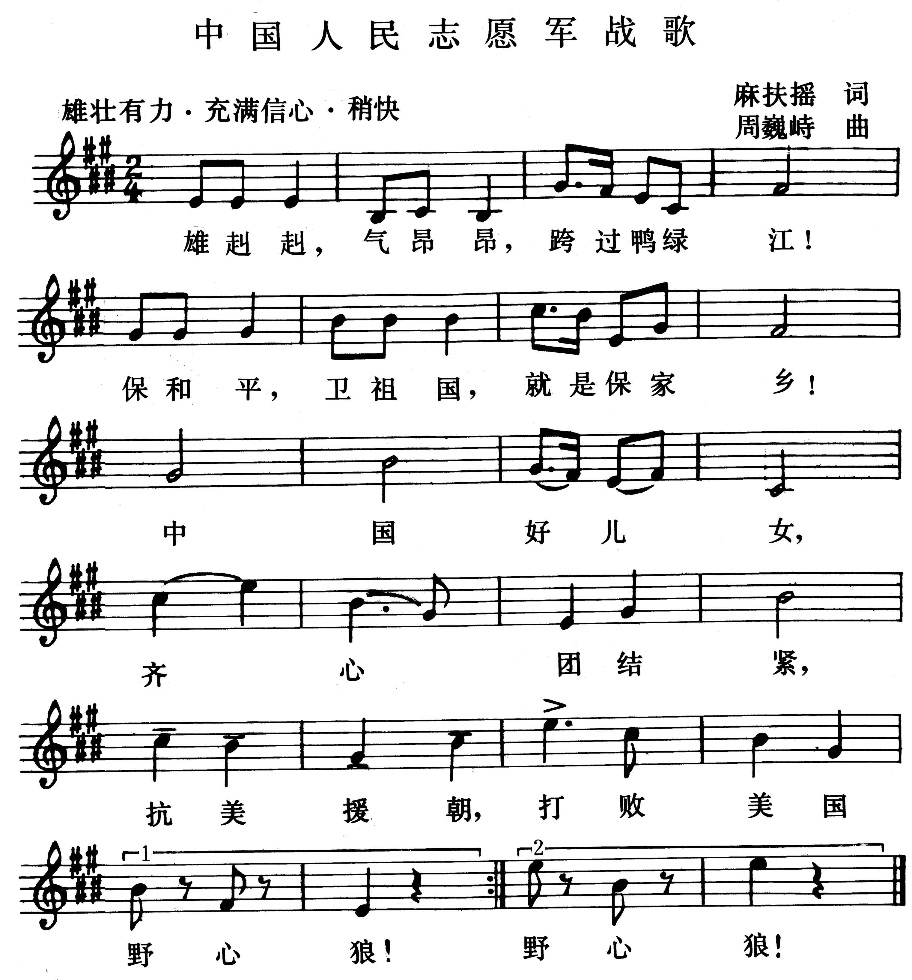 麻扶摇词,周巍峙曲。1950年10月,中国人民志愿军赴朝鲜参加抗美援朝作战。志愿军炮兵第1师第26团第5连政治指导员麻扶摇在部队赴朝前夕,为连队板报写了一首诗,作为出征誓词,后选登于该部队的《群力》小报。新华社记者陈伯坚到该部采访,把这首诗写入《记中国人民志愿军几位战士的谈话》的报道,发表于...