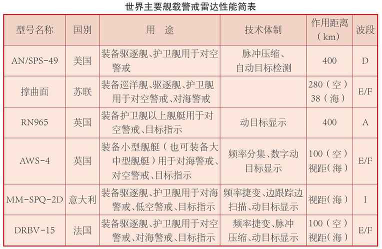 用于搜索、监视空中和海面目标并测定其坐标和运动参数的舰载雷达。又称舰艇搜索雷达。舰载警戒雷达天线波束在水平面内通常较窄,有较好的方位分辨率;在垂直面内则较宽,能保证一定的探测空域,并有助于防止舰艇摇摆时丢失目标;有的还采用赋形波束天线,能够探测低空目标和抑制海杂波。美国AN/SPS-49舰载对空...