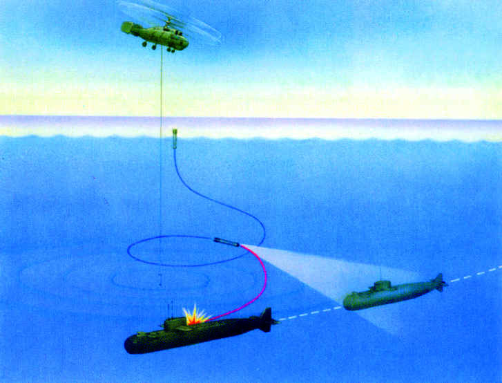 蓝绿激光反潜系统工作原理图 用非声学手段探测潜艇的各种设备。包括磁力探潜仪、前视红外探测仪、雷达和微光电视、废气探测仪、蓝绿激光探潜设备及合成孔径雷达(SAR)等。可与声呐共同组成探潜系统,是声呐探测潜艇的辅助手段。①磁力探潜仪。利用由潜艇引起的地磁异常对潜艇进行探测和定位,作用距离为数百米,...