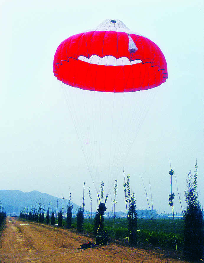 用于回收飞行器和重要设备的降落伞。主要用于回收卫星、飞船、导弹、运载火箭、无人驾驶飞机和靶机等。具有减速效果好、稳定性强和工作可靠等特点。按使用高度,分为高空回收伞和低空回收伞;按回收对象,分为无人驾驶飞机回收伞、导弹回收伞、高空探测器回收伞、宇宙飞船回收伞等。通常由减速伞、主伞及悬挂带组成。其...