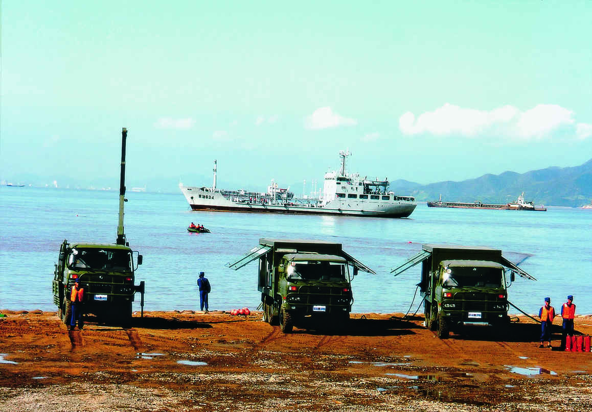 无码头条件下用于岸滩及邻近海区储存物资的装备。 岸海衔接物资储存装备主要有:①软质储存装备。一般由橡胶、聚氨酯等材料制成囊体容器,用于在岸滩或近岸水下储存油料、淡水,如岸滩储油(水)囊、储油(水)罐等。其特点是易折叠,便于陆上运输或水上拖曳,利于展开、撤收,但强度较低,耐磨性和抗老化性能较差。...