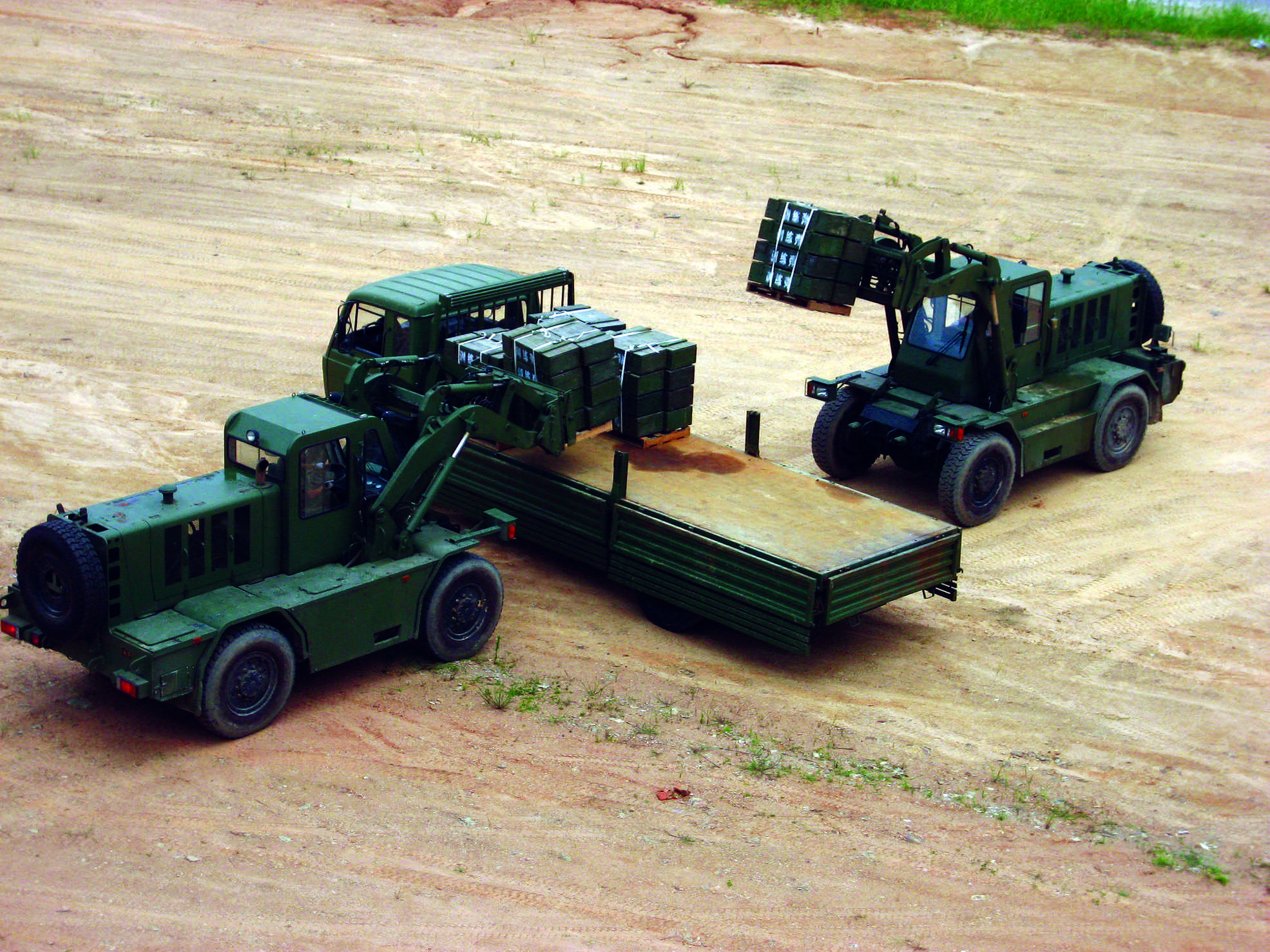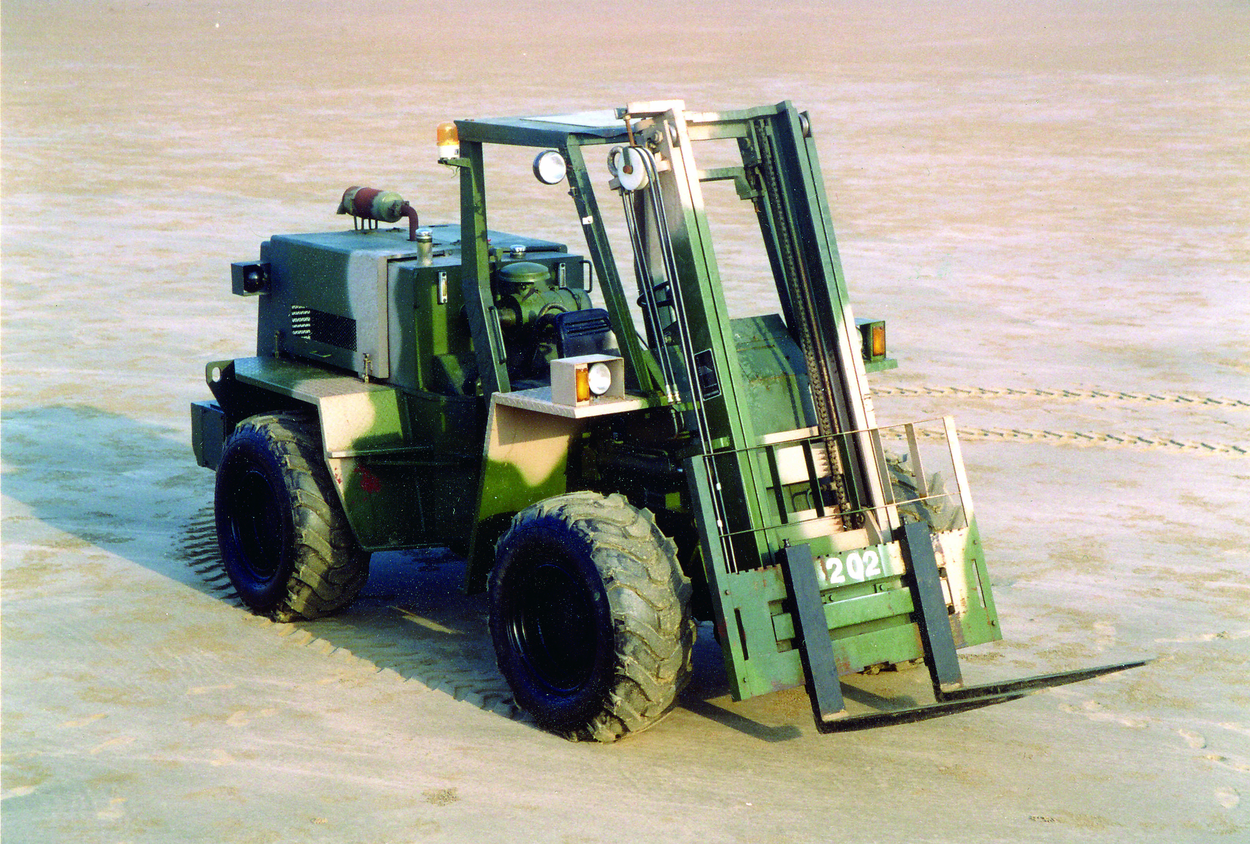 用于野战条件下物资装卸、堆垛和搬运作业的叉车。 野战叉车主要由动力装置、轮式底盘和工作机构三部分构成。通常采用内燃机动力装置。轮式底盘由车架、传动系统、转向系统等组成。工作机构由起升机构、液压系统、货叉等组成。按工作机构形式,野战叉车分为前伸型和门架型两类。前伸型野战叉车根据工作机构结构形式,...