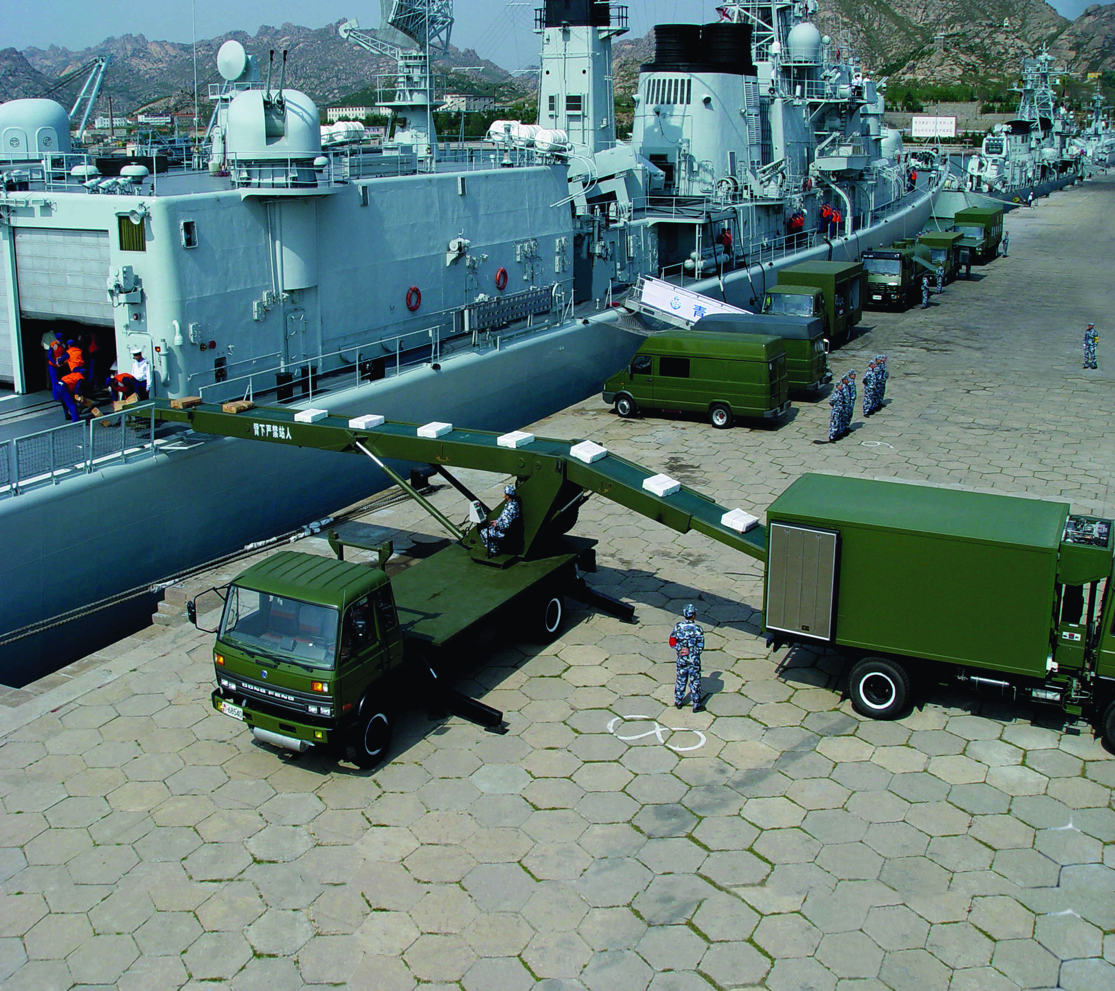 依托军港实施舰艇后勤保障及保持港区设施设备和环境处于良好状态的装备。主要有舰艇物资码头补给装备、舰艇饮食码头保障装备、军港勤务保障装备、码头医疗救护装备和岸勤指挥监控装备等。 舰艇物资码头补给装备 用于码头对舰艇实施干货、液货补给。主要包括:①舰艇干货物资码头补给装备。通常包括滚装装卸设施设备...